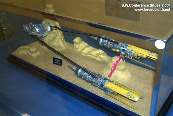 J.Bulloch y D. Prowse con un aficionado junto al X-Wing |