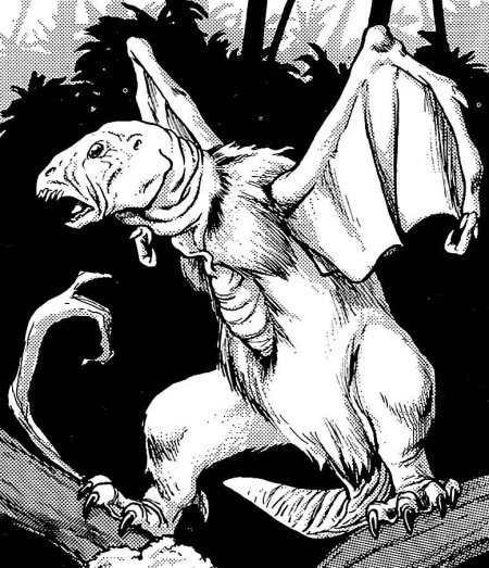 Pero el gwerax-hai, aunque más pequeño, podía llegar a ser aún más peligroso. Sólo medía metro y medio hasta el lomo, y trescientos sesenta centímetros de largo. Era ágil y algo más rápido que el behemoth, y también tenía grandes colmillos, en este caso curvos, afilados y de entre treinta y sesenta centímetros. Asimismo, una larga y delgada cola le ayudaba a mantener el equilibrio mientras maniobraba entre los árboles, camuflado por su color marrón-verde natural. Aunque un gwerax-hai suponía menos amenaza que un behemoth, el gwerax-hai era más peligroso porque cazaba en jaurías de entre cinco y dieciséis machos (Las hembras no cazaban; sólo cuidaban a los jóvenes). La jauría escalaba árboles en silencio para rodear a la presa y atacar. Una vez la conseguían herir, les era fácil rastrearla para matarla en los bosques.