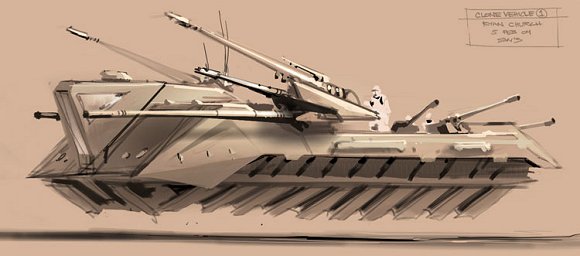Boceto de Joe Johnston del vehículo y de las tropas martillo.