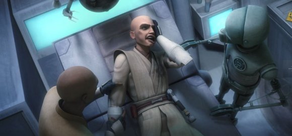 La cantina en la que Rako Hardeen es interceptado por Anakin, y en la cual es barman es un curioso alienígena con forma de gigantesca serpiente, es un escenario que se creó reciclando el Trono de Ziro el Hutt que pudimos ver en la película "Las Guerras Clon" que dio inicio a esta serie.